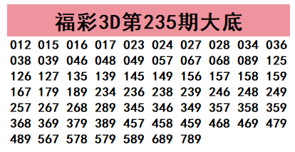 福彩3D第2025235期大底推荐: