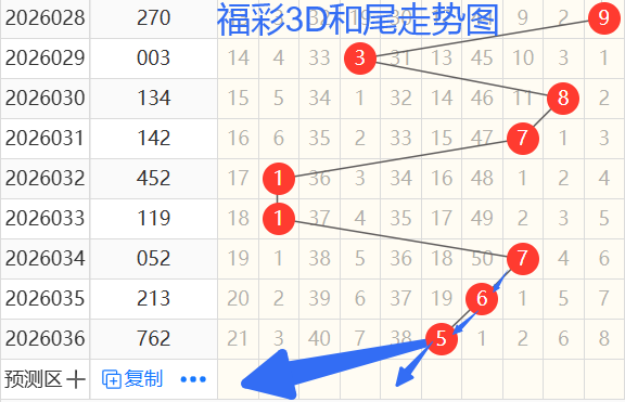 2)我们来看跨度;还是以032期——036期为例,如图依次是38525跨度,按照路数转换关系来看,那么跨度我们暂定258跨 ,本期个人比较看好2 5 8跨。