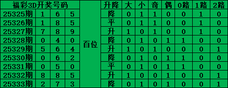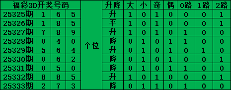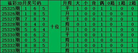 012路比:3:3:3,9期中三路平均参考当日数据,本期选择1路/0路:7/9号。
