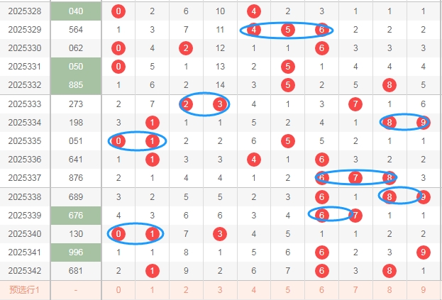 上图是福彩3D开奖号码分布走势图,你们看看上面走势图中我用蓝色小圈圈标注出来的地方,你们会发现的就是我标注的蓝色小圈圈都是连号,最近这个连号出现的太少了,那么本期可以关注出连号一组二连号或者三连号。
