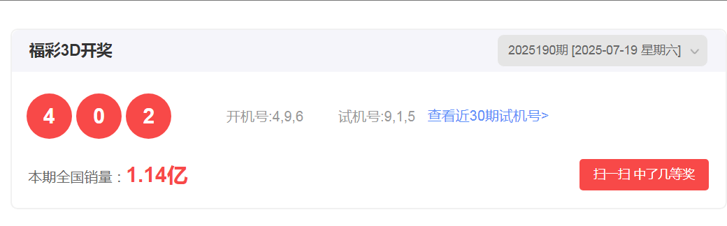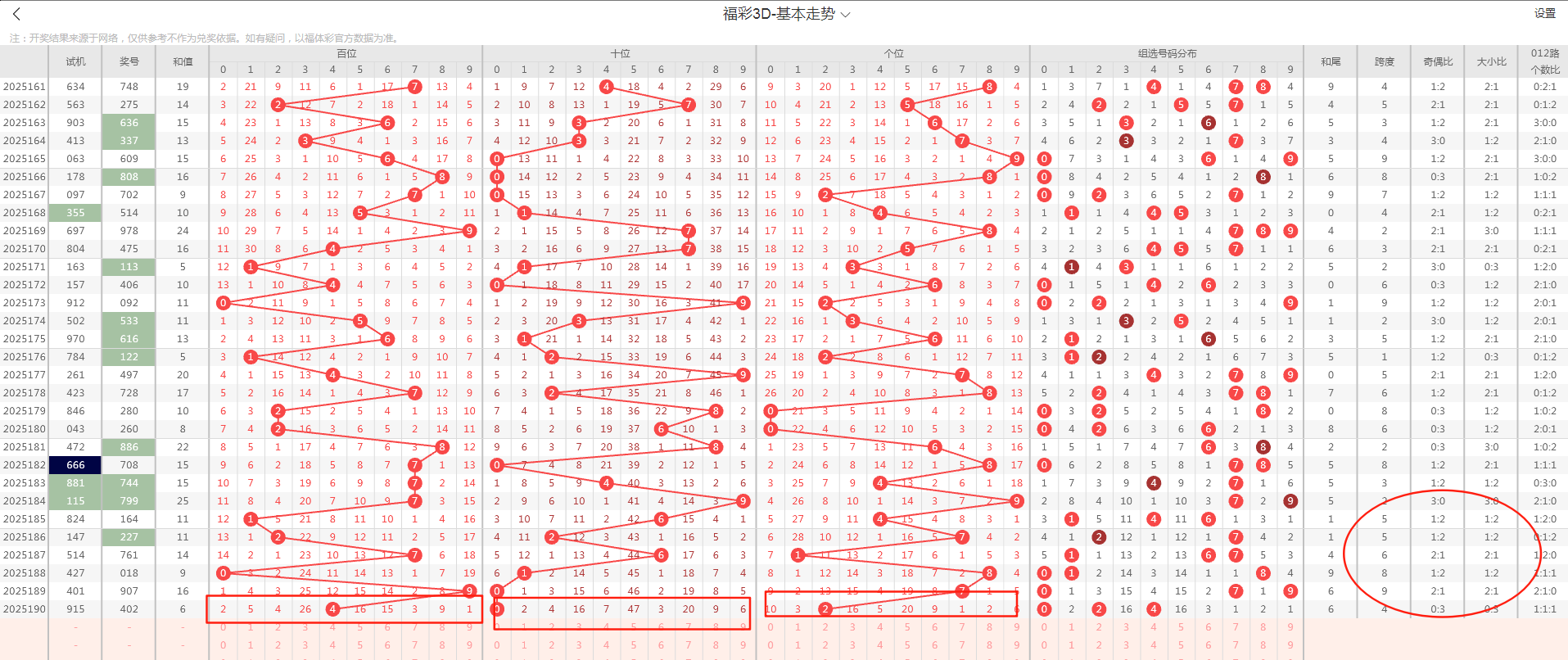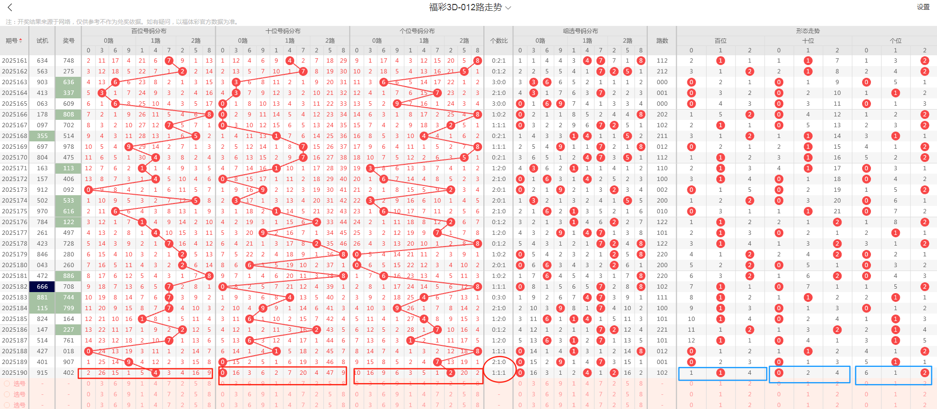 今天福彩3D第2025191期的趋势判断为:方向主看组三防六;跨度回落小跨度明显;和值回撤中区概率较大;