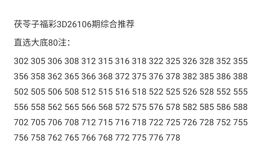 茯苓子福彩3D26106期综合分析