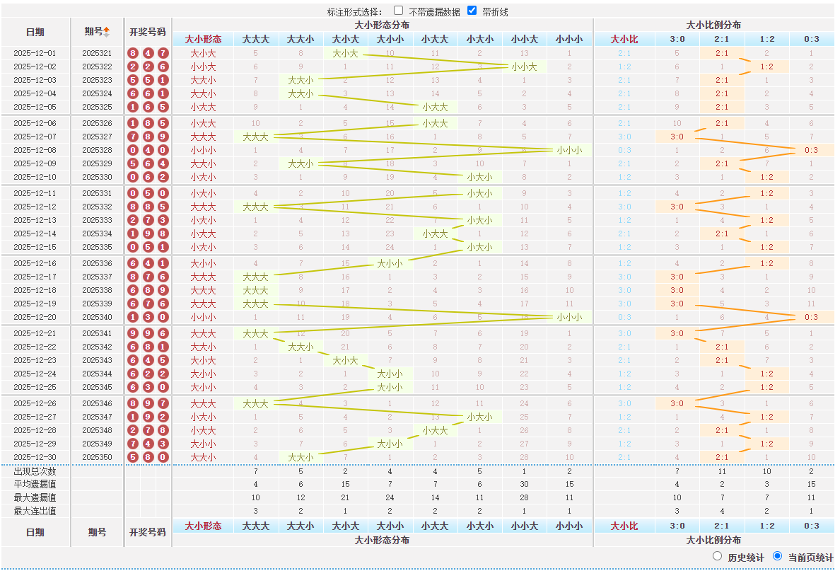 通过以上数据我们本期选号范围建议:大大小 / 大大大 / 小大小 / 小大大,这几种思路去进行组号。