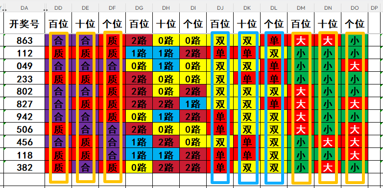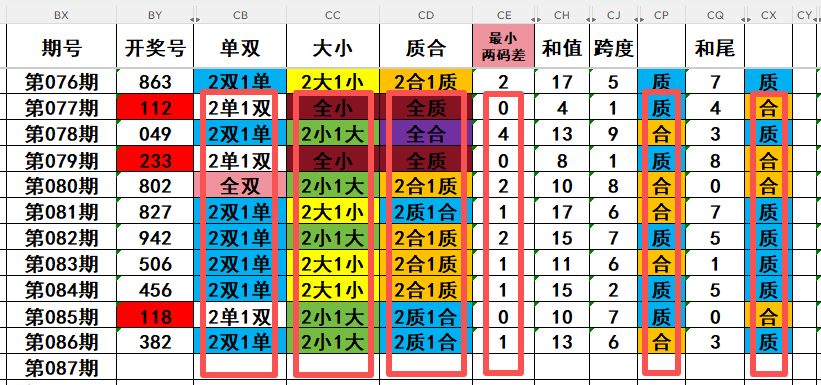 2,目前开奖号十位号码球11天当中,质数(12357)开出了5次,合数(04689)开出了6次,本期重点关注开奖号十位号码球质数的回补!