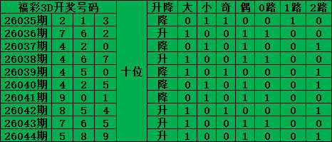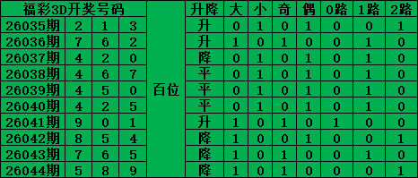 福彩3D是从0-9每期开出3个号码,截至2026044期三个位置最大遗漏的是37期的:百位的3号。
