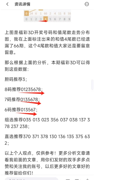 上图是上期的福彩3D号码分析文章的截图,最后我推荐的8码,7码和6码都是正确的,下面来分析一下本期的福彩3D和推荐号码。