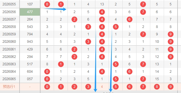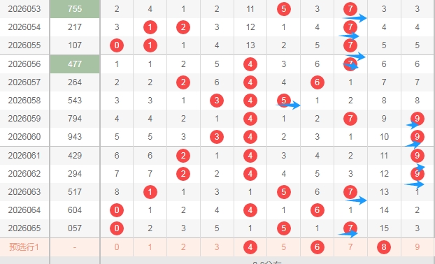 上图是福彩3D开奖号码走势分布图,我在上面走势图中标注出来的数字都是遗漏周期大的数字2389,标注出来的蓝色小箭头表示遗漏周期,上期开出了一个重复号码,两个隔一期的数字,也就是说上期开出了3个遗漏周期小的数字,那么本期开出遗漏周期大的数字的机会是有的,关注数字2389出一个两个吧。