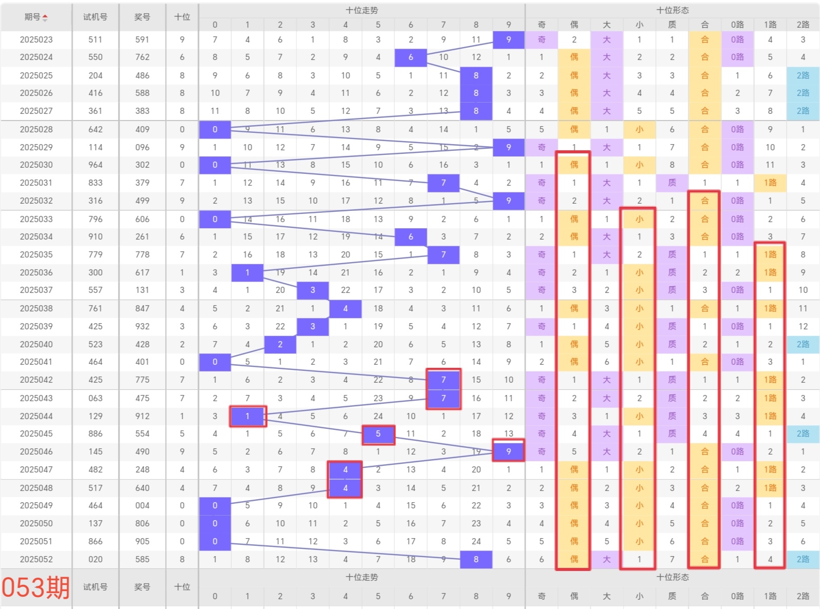 十位:上期在后半段7~9开出号码,7和9可能与8形成斜连走势,本期可能会在中间段3~6和后半段7~9开出号码,十位连续六期开出偶数,本期可能开出偶数,可能是小数和合数,十位上期开出2路号码,本期可能开出1路号码,防守0路号码。