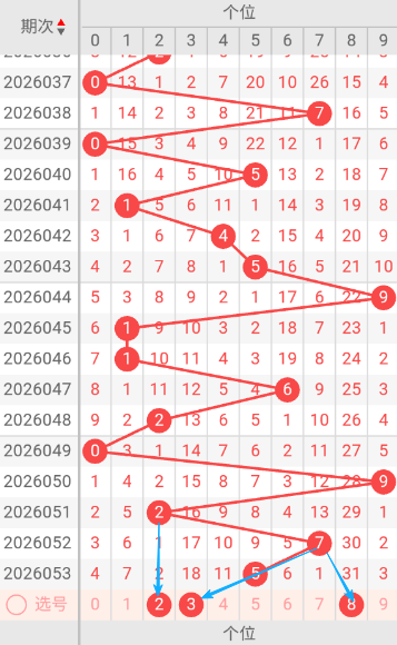 现在我给大家分析下,本期个位可能开出的号码,上期开出了5,041期开出了1号码球,042期开出了4号码球,043期开出了5号码球,044期开出了9号码球,045期开出了1号码球,046期开出了1号码球,047期开出了6号码球,048期开出了2号码球,049期开出了0号码球,050期开出了9号码球,051期开出了2号码球,052期开出了7号码球,053期开出了5号码球,跟据这几期的走势和历史30期内的走势对比,可以先考虑本期可能会出小号,下面我给大家推存个位可能开出的几个号,个人比较看好238,个位我们就先暂定这两个号。本期重点关1-8之间的号码,同时关注遗漏期数较大的号码。按最近遗漏走势,开了遗漏期数较大之后开遗漏期数小的可能性比较大。