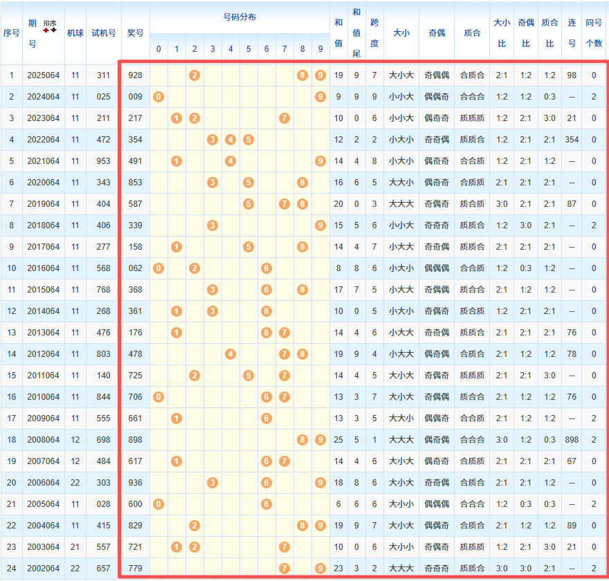 1、统计往年同期开奖号码