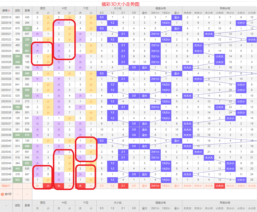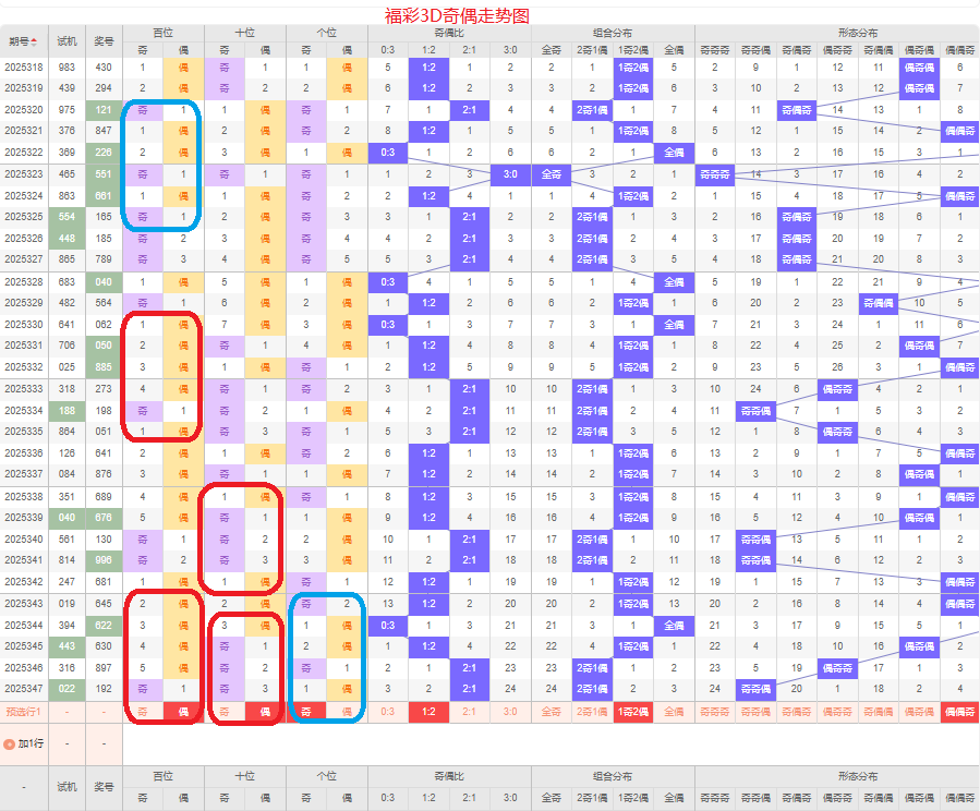 个位近期上下期跨度相对较大,侧重大号码,侧重奇数的号码,侧重0路和2路的号码,侧重号码03567。