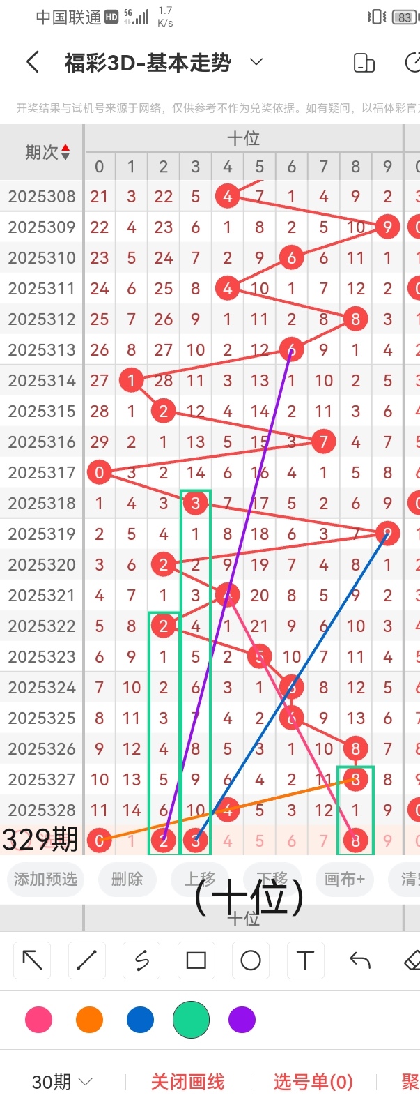 通过以上对上期的简单回顾,下面进入2025329期(下面简称本期)的选号分析: