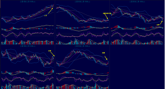 上图是对码胆的同屏图,昨天开出203对应的对码是203,对码六继续开出。上图中可以看到对码0还是继续走强中,继续顺势而为。对码1横盘震荡行情,前期的压力位还是没有突破,现在连续回调回踩布林中轨,大概率要形成支撑。对码2底部反弹中,继续看反弹。对码3连续反弹之后回调了2期,昨天再次反弹,kdj指标有形成死叉的趋势,观望为主。对码4连续反弹之后昨天出现了首次回调,观望为主。