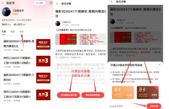 【3】 购买会员:更新一起彩app到最新版本,进入【三D狙击手】的会员专区点击文章购买会员。