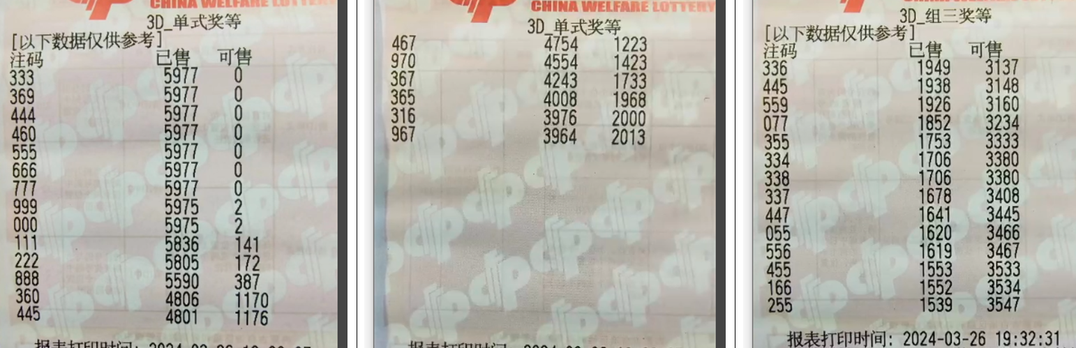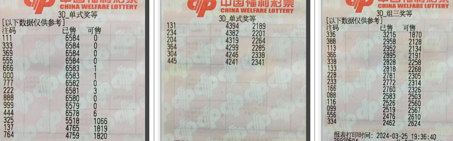 福彩3D有几个数据非常值得我们研究,一个是试机号(一般是下午6点左右发布),另一个就是每期的限号数据(也就是当期哪些号码已经达到上限,不能再打进去了),我主要是统计近三期的限号数据(不同地区和不同时间数据会有变化),个人感觉这个限号数据代表大家看重的号码或者某种趋势(可以理解成冷热程度),同时考虑大家看号的数据具有一定的延续性,值得我们参考研究,接下来我们统计一下近三期的数据,福彩3D限号数据有三个类型,分别是单式、组三、组六,分别都有20组号码,我们分别分类进行出次统计,我主要取前四码来做胆码,并分别拆分为两码作为缩水参考使用。