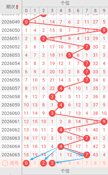 现在我给大家分析下,本期个位可能开出的号码,上期开出了7,053期开出了5号码球,054期开出了7号码球,055期开出了7号码球,056期开出了7号码球,057期开出了4号码球,058期开出了4号码球,059期开出了4号码球,060期开出了3号码球,061期开出了9号码球,062期开出了4号码球,063期开出了7号码球,064期开出了4号码球,065期开出了7号码球,跟据这几期的走势和历史30期内的走势对比,可以先考虑本期可能会出小号,下面我给大家推存个位可能开出的几个号,个人比较看好023,个位我们就先暂定这两个号。本期重点关0-8之间的号码,同时关注遗漏期数较大的号码。按最近遗漏走势,开了遗漏期数较大之后开遗漏期数小的可能性比较大。