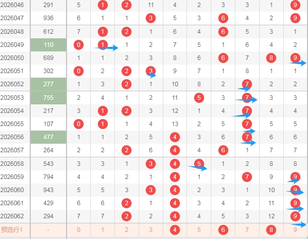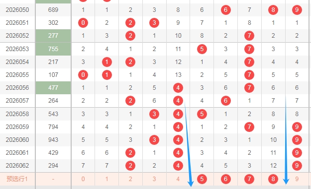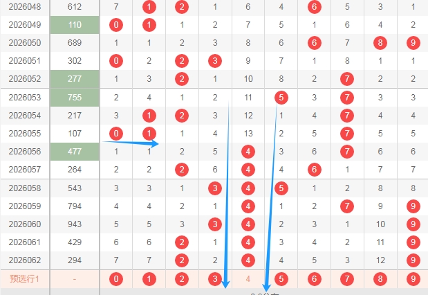 上图是福彩3D开奖号码走势分布图,我在上面走势图中标注出来的蓝色小箭头表示右边这个数字最近开出的都是奇数数字,最近几期右边这个数字都是奇数,那么本期可以关注右边这个数字出偶数,假设出偶数的话,那么偶数数字468可以关注出一个。