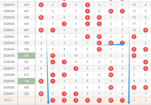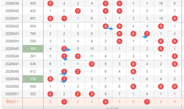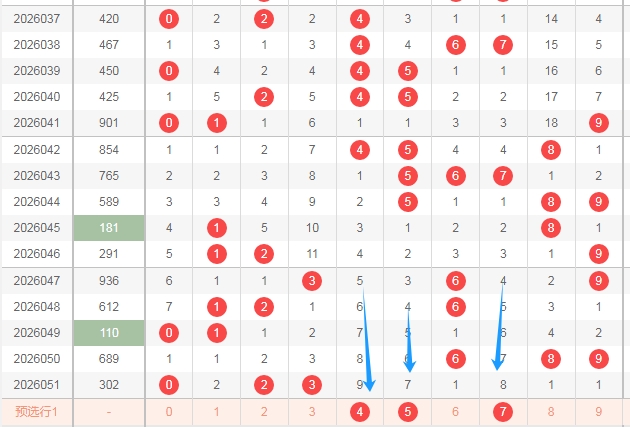 上图是福彩3D开奖号码走势分布图,我在上面走势图中标注出来的数字都是1路球数字1 4 7,你们看看上面走势图中标注出来的蓝色小箭头都是1路球数字,最近1路球数字又遗漏了两期,那么本期1路球数字开出的机会还是有的。
