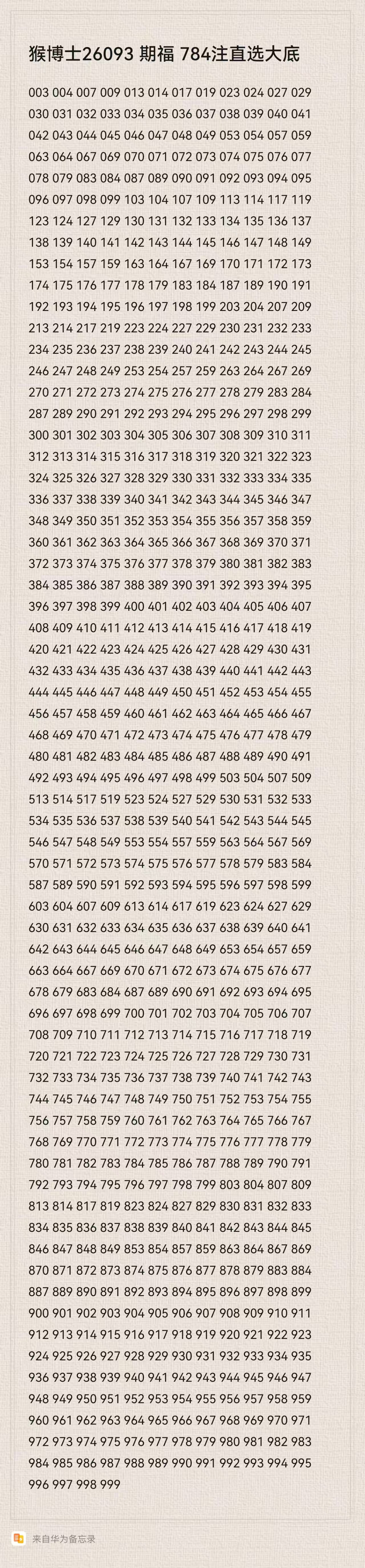 猴博士26093期福784注直选大底:(可以当母底用,然后进行缩水)