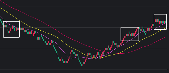 可以看到一些规律,在粉框中,如果一致,那么接下来这些跨度也会出。