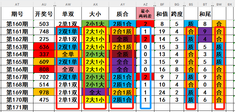 3,最近10天当中,两质一合开出3次,两合一质开出3次,全质数开出2次,全合数开出2次。