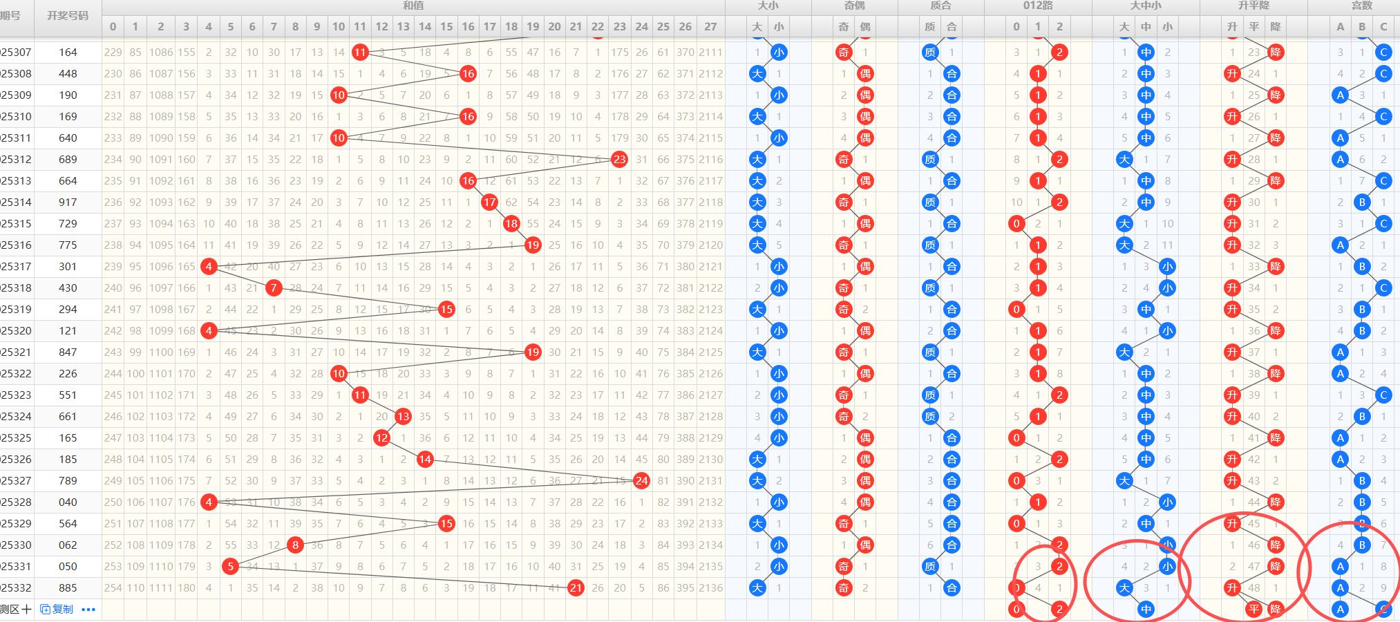 大小:上期开出了大大大的直选,本期关注:两大一小、两小一大