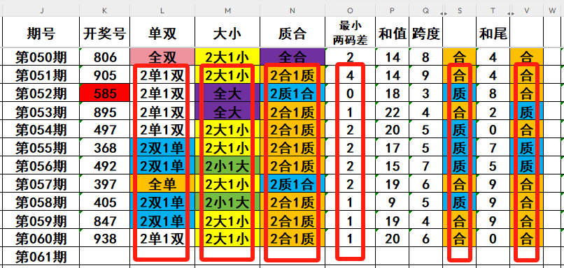 3,目前开奖号个位号码球11天当中,质数(12357)开出了8次,合数(04689)开出了3次,本期重点关注开奖号个位号码球合数的回补!