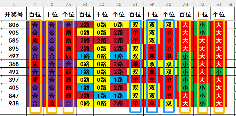 1,目前开奖号百位号码球11天当中,质数(12357)开出了3次,合数(04689)开出了8次,本期重点关注开奖号百位号码球质数的回补!
