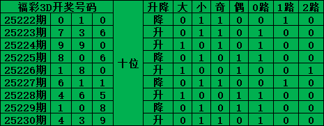 综上所述,福彩3D第2025231期号码推荐:
