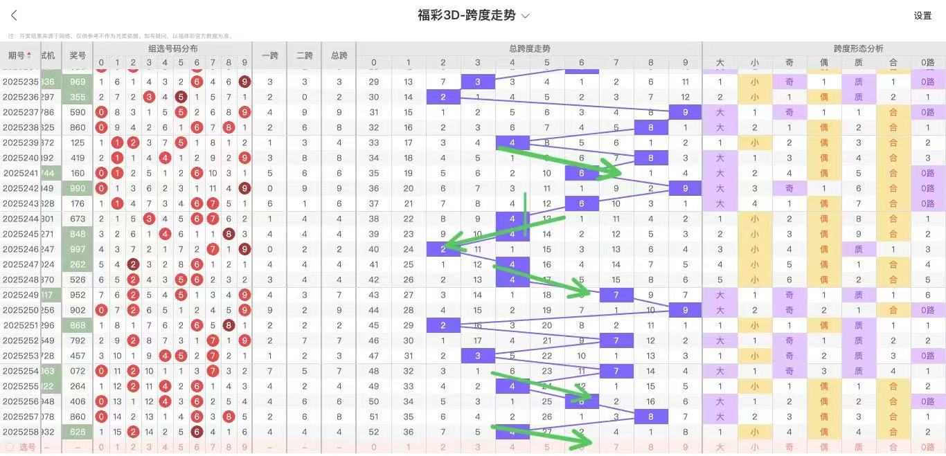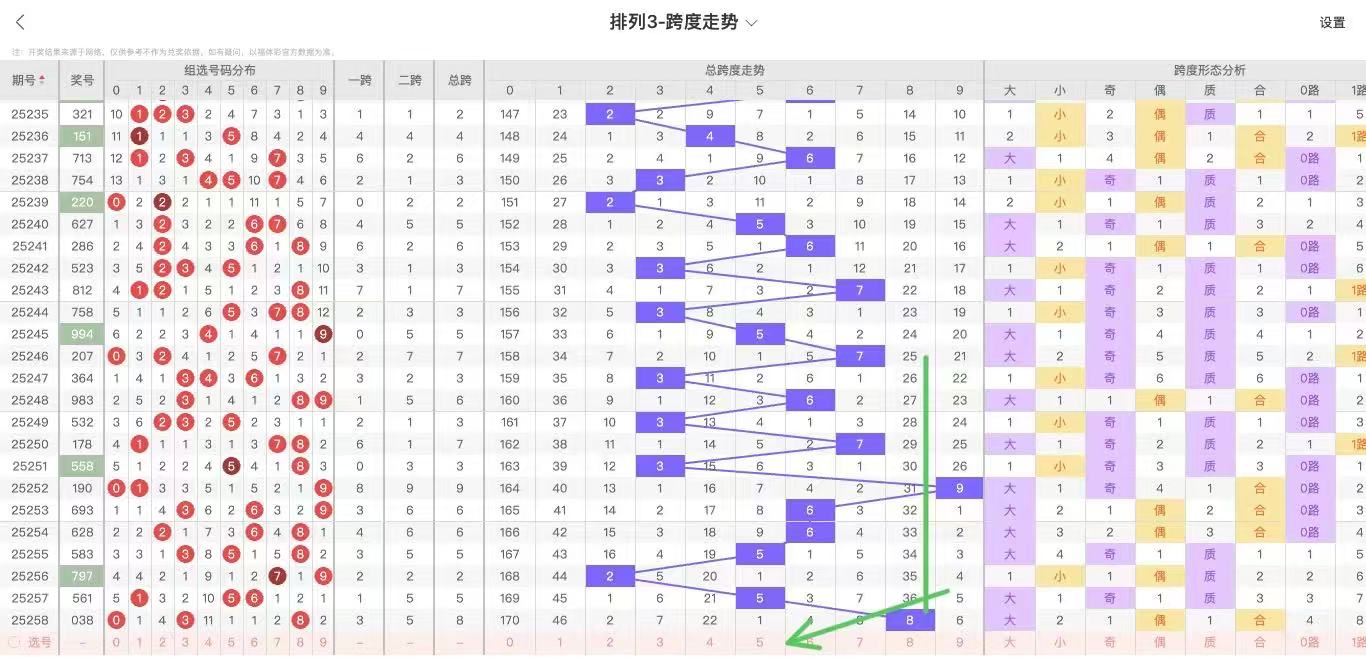 10期内跨度走势为:3-7-3-9-6-6-5-2-5-8,10期内大小跨比:7:3,奇偶跨比6:4,百期内跨度8共开出的7次,下期数据:3 4 3 5 4 6 近期度较热,考虑跨度5开出后容易出大跨度,近期大小规律下大:奇:质,所以接下来继续大跨,奇跨度表现!