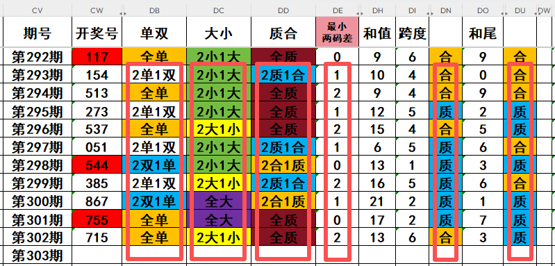 大家好,我是荒三帝丶。上期福彩3D第2025302期开奖715,形态组六,最小两码差2,和值13,跨度6,和尾3,全单,两大一小,全质。下面有一张数据统计图,图中可以看到很多遗漏信息。关注遗漏值,也是我们选号的一个重要参考数据!这对于一些做追号计划的彩民具有很大的参考意义!接下来,我们先看数据图:再来分析福彩3D第2025303期。