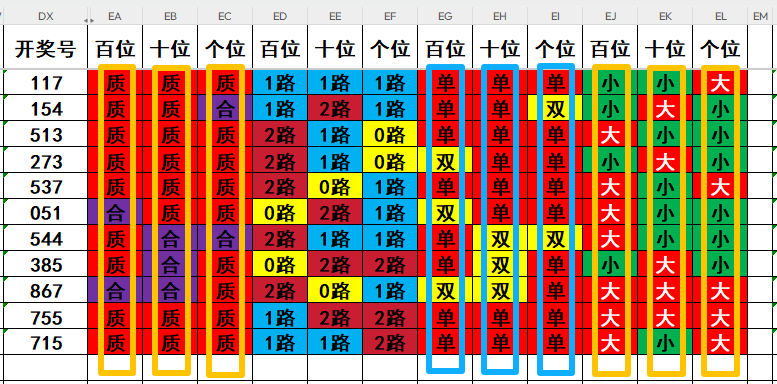 3,目前开奖号个位号码球11天当中,质数(12357)开出了9次,合数(04689)开出了2次,本期重点关注开奖号个位号码球合数的回补!
