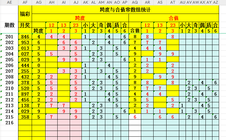 根据这一规则,结合往期开奖跨度及合值的数据,构建一个数字表格,通过对历史数据的长期积累与持续分析,能够更精准地把握跨度与合值的变化趋势,从而有效压缩投注号码范围,提高投注效率(见插图)。 观察以上数据,