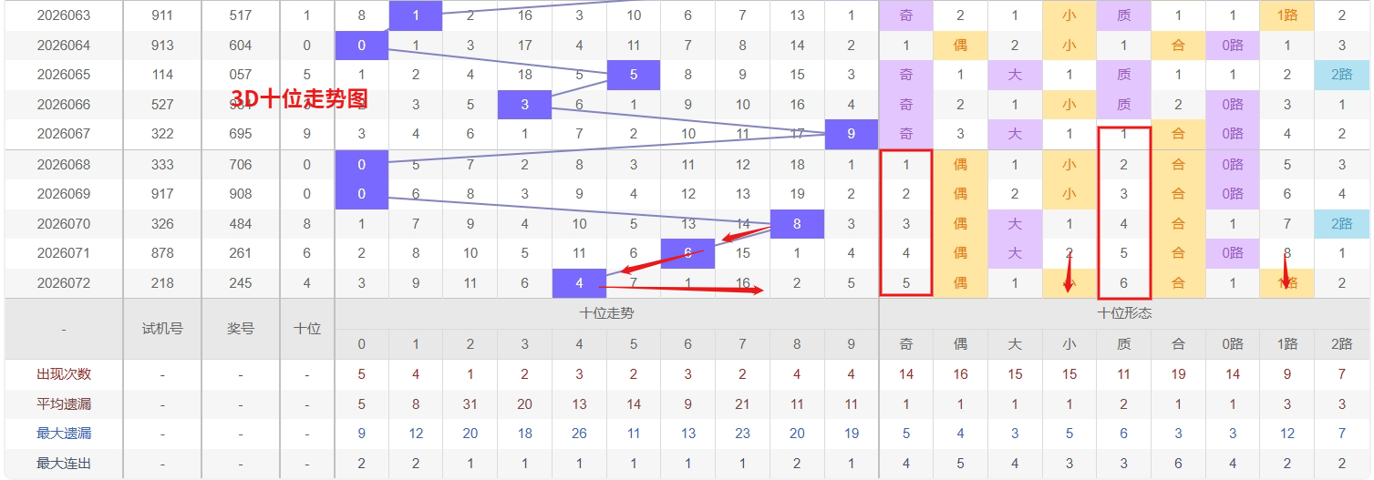福彩3D十位分析:第2026072期十位开出号码4属小偶数号码前端。以历史100期数据为例十位奇偶比约为51比49,大小比约为53比47近期大小相差2点,根据求均衡的规律开出小数的概率比大数高一点。上期我们分析奇数经过连续回补后有走偶数的可能,开出奖号4小偶数符合我们的预期,3D十位走势上,近期1号的表现相当抢眼,已然成为该位置的热门号码,从出号频率和走势形态来看,其连续现身的节奏感十分清晰,热度尚未出现衰减迹象,在惯性作用下,1号继续连下的可能性较大,这种热号在十位持续走强的模式往往具备较强的延续性,短期内不宜轻易看断。与此同时,2号则处于明显的冷态之中,作为长期未出的冷号,其回补需求正在逐步累积,所以福彩3D第2026073期十位推荐12579。