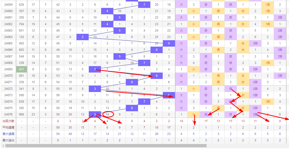求均衡规律解释:求均衡是指如果某一个号码在一个区间长期不出现,总会在另一个期间进行回补。
