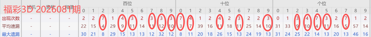 2026080期开奖号码802,我们可以看出近30期百位8出现3次,十位0出现7次,个位2出现3次。