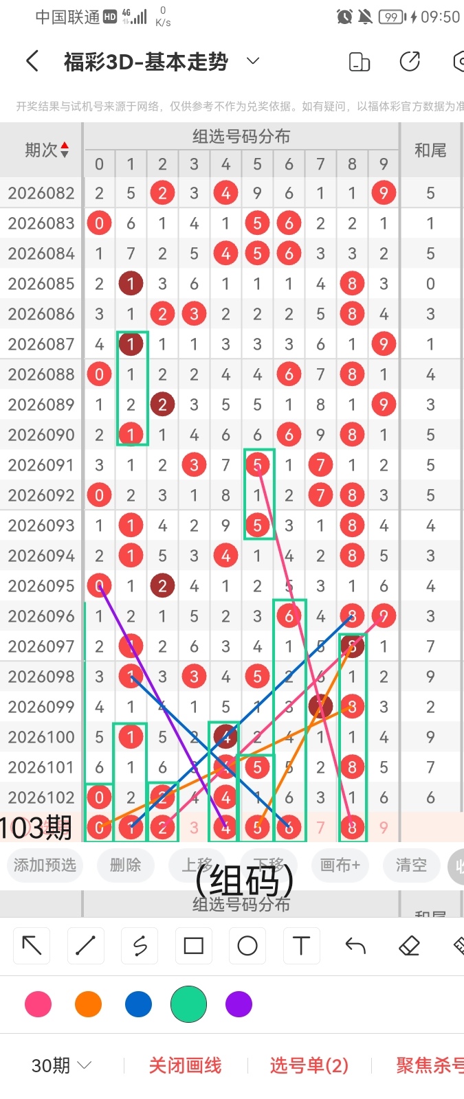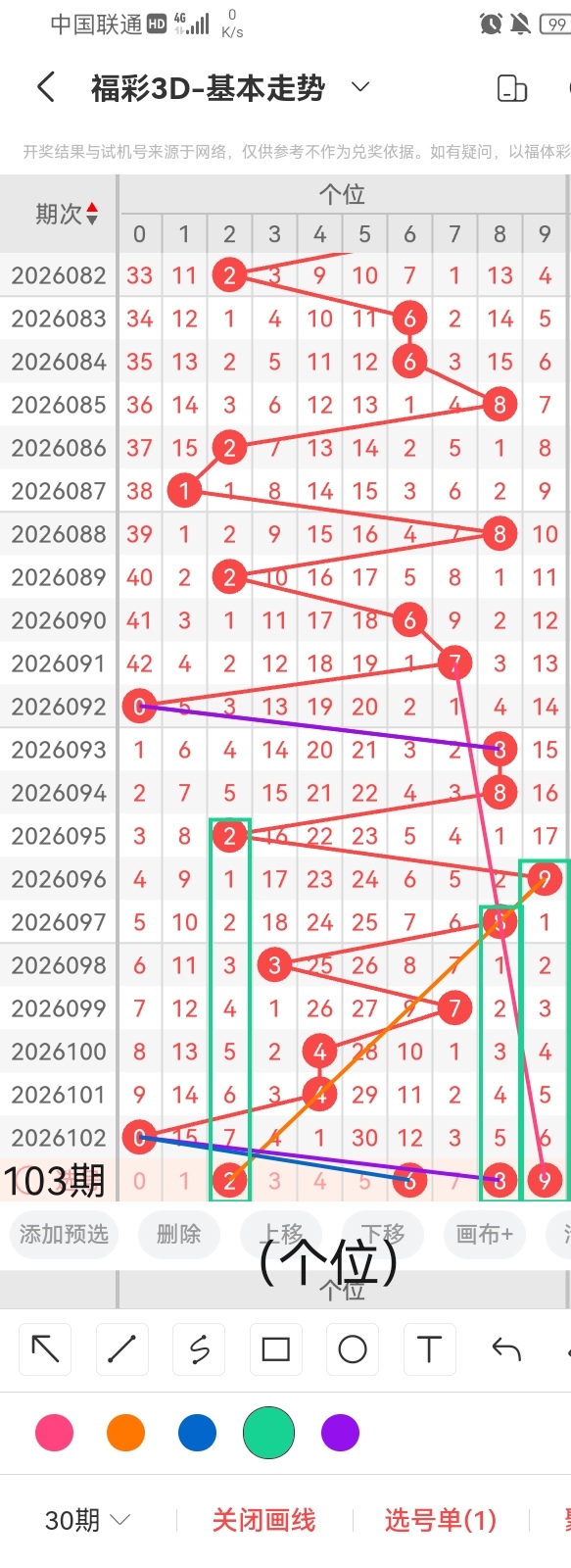 通过以上对上期的简单回顾,下面进入2026103期(下面简称本期)的选号分析: