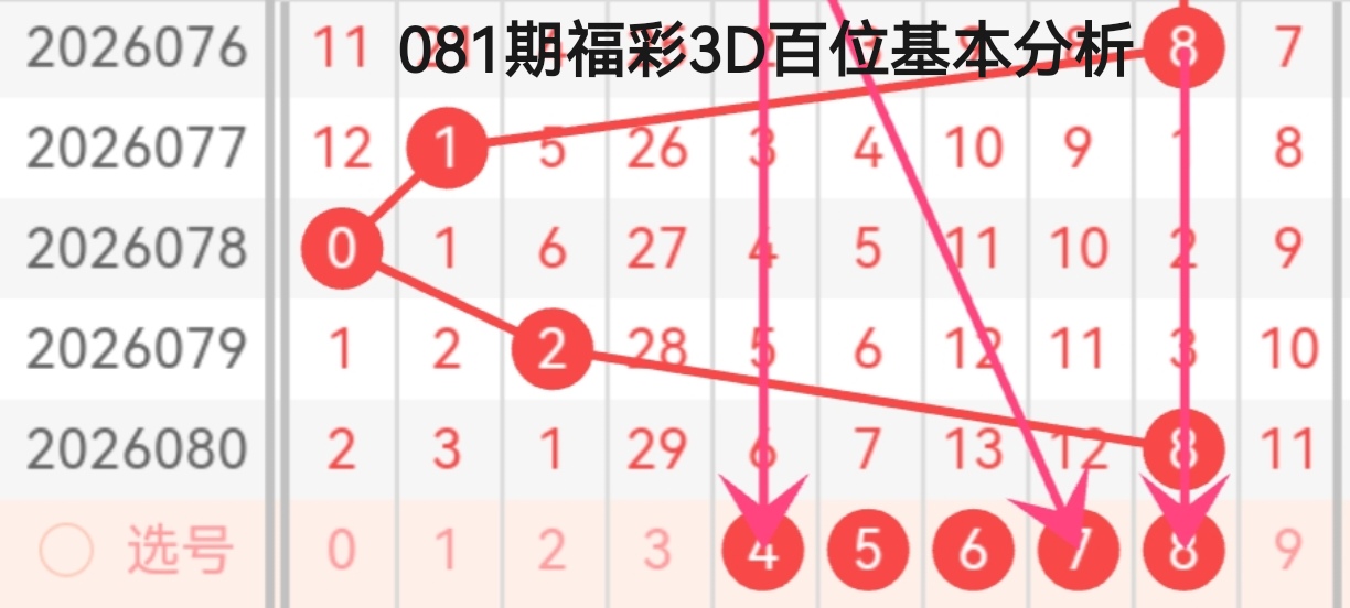 上期百位出了这个8号码球,并且走了一个短期遗漏号码的回补 走势,走了一个上升趋势,走了 一个温号回补走势 ;本期来讲大概率应该会走上升趋势,需要注意的是本期并不看好继续走极大号码9;结合最近的遗漏分析而言,要更多的关注中大遗漏号码的一个回补走位,特别是54的近期要逐渐温态走势的状况下,要关注13其中一个号码走出,同时更要关注中号码的一个回补走出;因为上期小振幅回补之后,本期更要关注中大振幅的一个继续回补走势。结合近期的奇偶走势来看,上期再次回补了 一个小偶数质数号码球,本期继续要关注奇数的一个走热,其次是偶数一个回补;结合质合走位来看,本期更多关注质数的走出,根据周三的012路分析,本期更多关注1路和0路后面的走势走位,综上所述,要456789的一个走位防守1的走位!