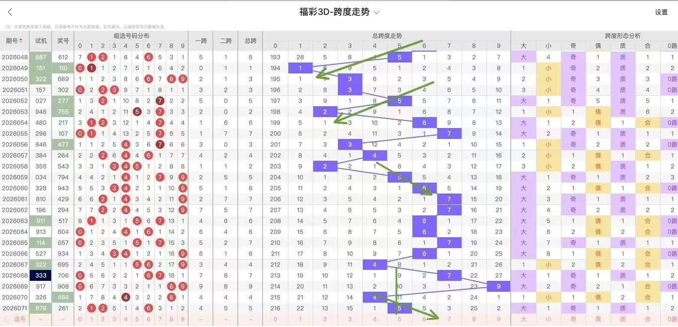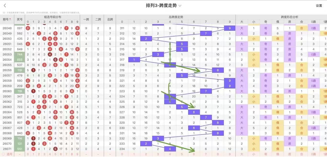 根据走势对跨度观察统计得到以下分析结果: