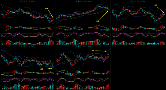 上图是对码胆的同屏图,昨天开出640对应的对码是140,开出了对码组六。图中显示对码0还是持续反弹中,中间出现调整也是马上红格子回补,继续上攻是大概率。对码1连续回调之后昨天出现了红格子反弹,目前还需要继续观察,看这个60均线能否形成有效支撑。对码2还是处于反弹中,昨天蓝格子,今天红格子概率较大。对码3底部横盘震荡,昨天蓝格子,今天红格子是大概率。对码4连续创新高,继续顺势而为。
