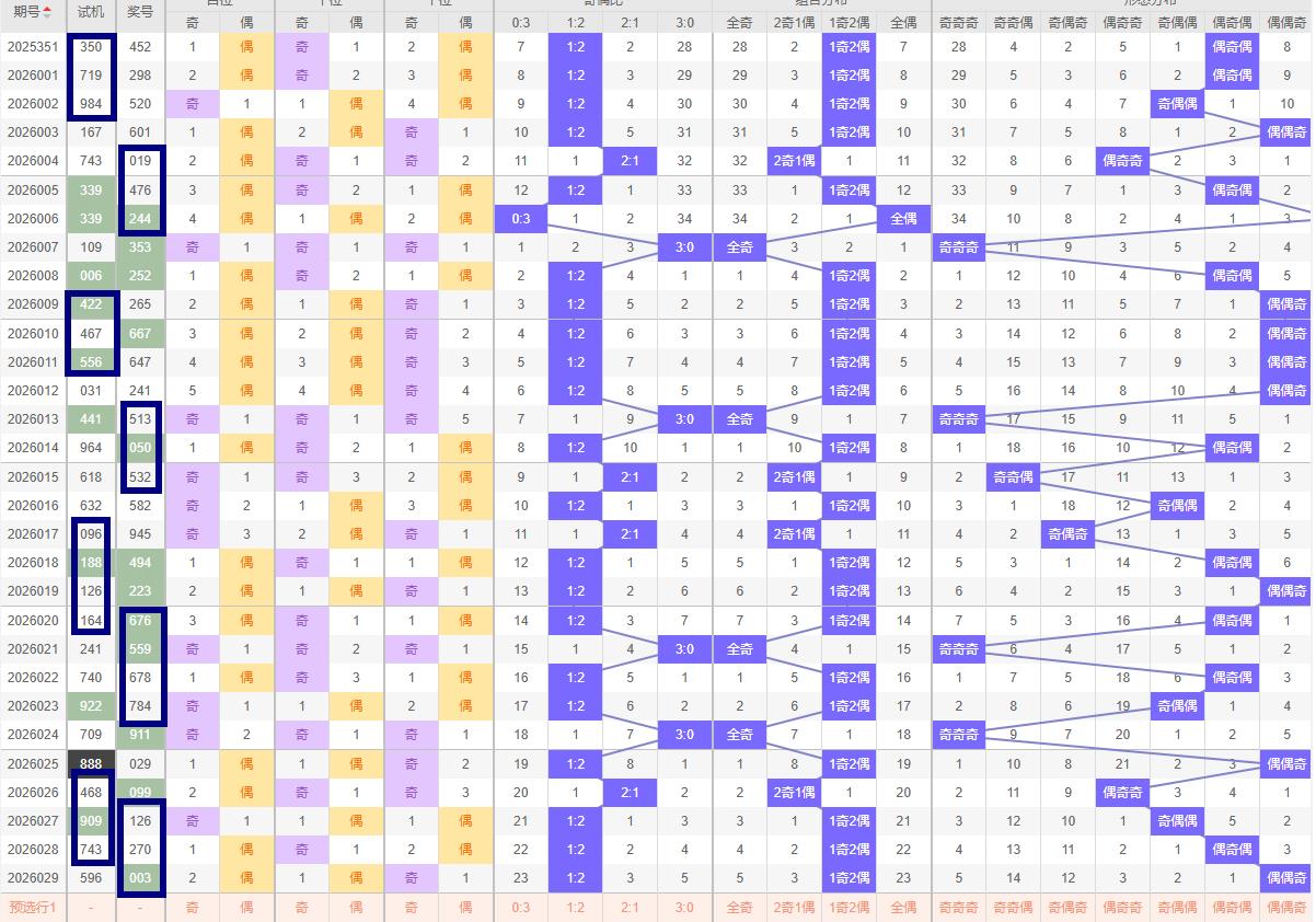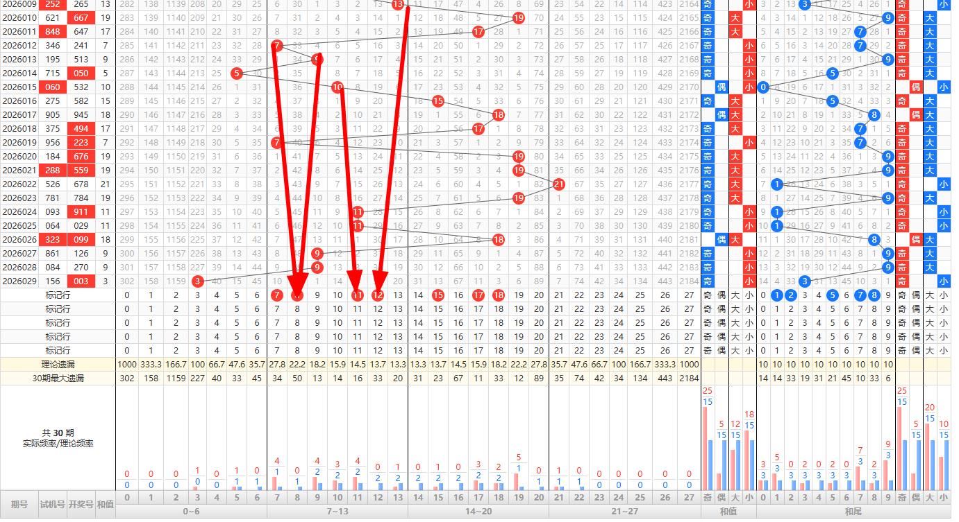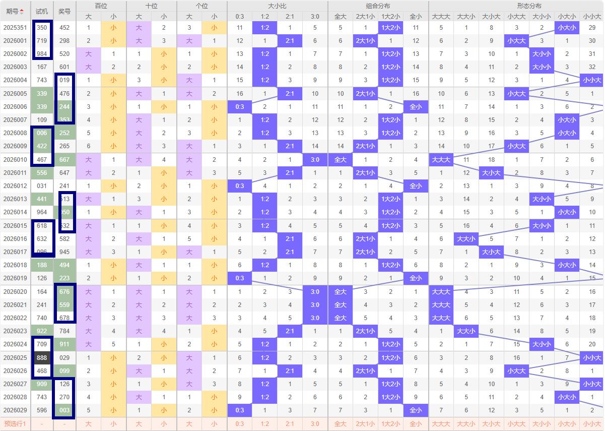 030期/福彩3D综合分析 :大小走势.奇偶比列及跨度分析等组号分析