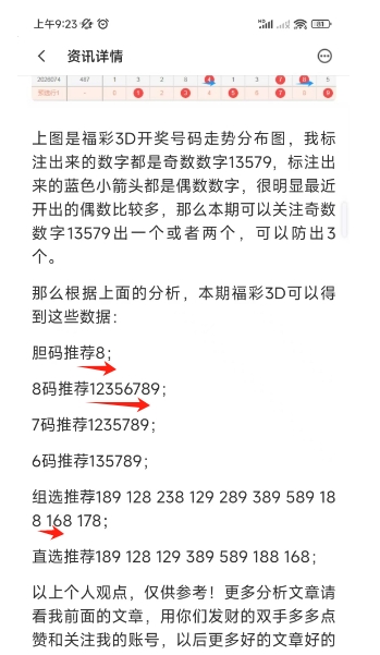 上图是福彩3D上期号码分析文章截图,我最后推荐的胆码,8码正确,推荐的组选单式正确,这个你们去看上期的文章。