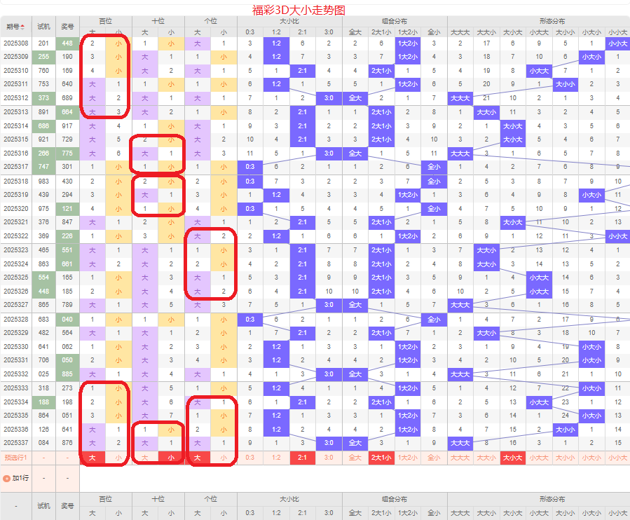 上期大小比为3:0,全大的号码组合方式,从近五期出现情况看,大号码出现8次,小号码出现7次,大小号码出现较平均,本期侧重两大的号码组合,本期百位侧重大号码,十位侧重小号码,个位要侧重看大,侧重大小大或者小小大的号码组合,根据大小做五码定位56789/01234/56789或01234/01234/56789