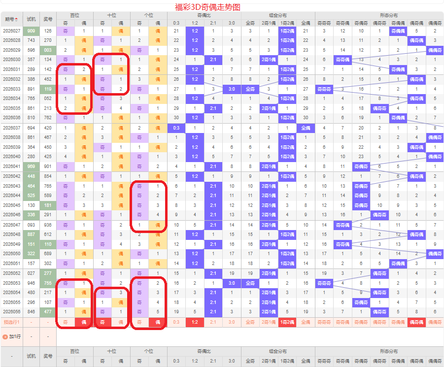上期奇偶比是2:1,两奇的号码组合方式,从近五期的奇偶数出现情况看,奇数出现11次,偶数出现4次,奇数号码出现较多,本期侧重两偶的号码组合,侧重偶奇偶或奇偶奇的号码组合方式,根据奇偶形态做五码定位02468/13579/02468或13579/02468/13579