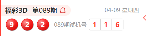 福彩3D第089期开奖结果为:922