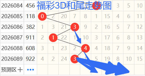 1)我们来看和尾,以085期——089期为例,如图依次是03143和尾,按照012路排序是00110路和尾,后面两期不是同路,今天就是1路和2路的和尾,为什么这么讲呢,这个是个大概率的问题,也是根据长期的研究规律定的,准确率相当高,我定了1路和2路的和尾,也就是147258尾,那么我们再来看和值,按照和值除3余数的话,可以分为余0 1 2路. 那么我们来看,85期和值10余1,86期和值13余1,87期和值11余2,88期和值14余2,89期和值13余1,那么本期看和值看余0和余2,根据上面的和尾那么就只有12 15 18 14 11 17 8 5值。