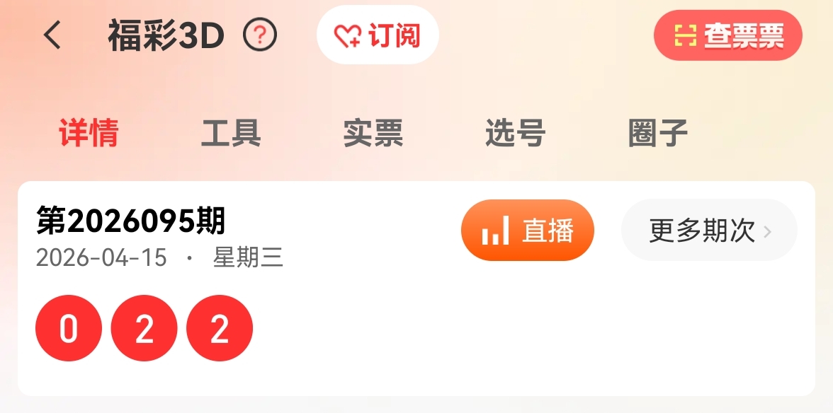 大家好,我是旺运连连。福彩3D 第26095期开出开奖号码0、2、2。形态为一奇两偶,两小一大,和值为4,跨度为2。上期号码全由小号与中段号码组成,且重号现象明显,属于典型的“小跨度、低和值”形态。