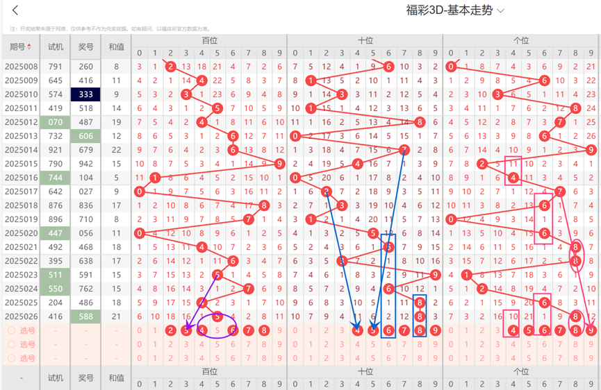 5、综上所述福彩3D-第25027期定位推荐信息如下: