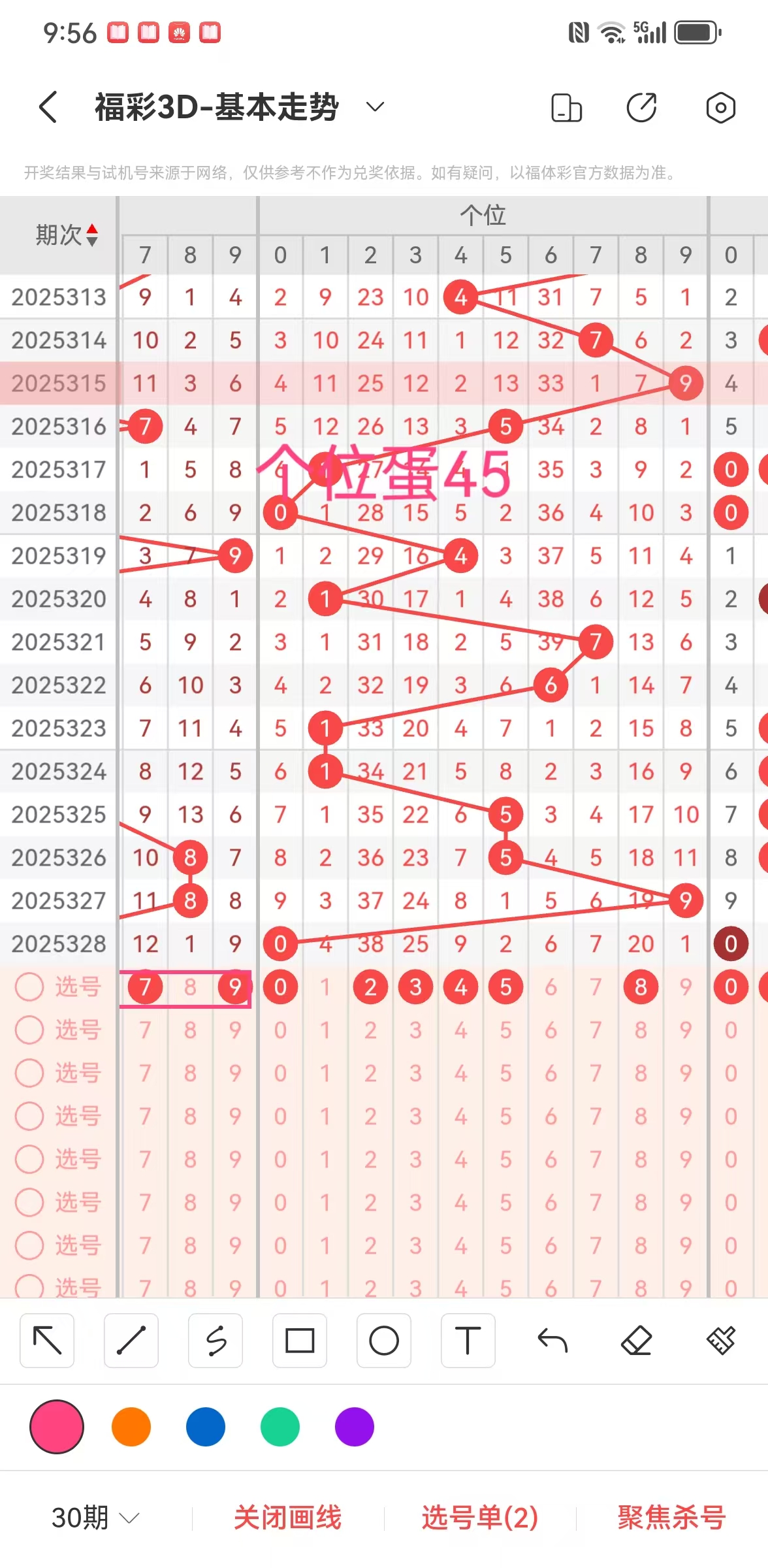 ②个位大小比:近5期大小比为3:2,大号依次开,559,大号中奇偶比为2:1,小号依次开出11,小号中奇偶比2:0,通过对比分析得出(689240)有可能开其一