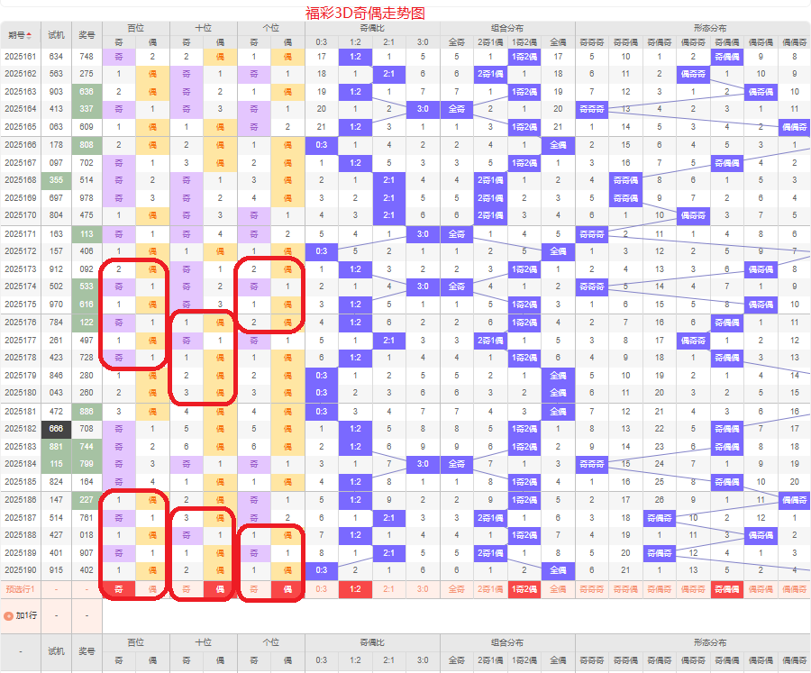 上期奇偶比是0:3,全偶的号码组合方式,从近五期的奇偶数出现情况看,奇数出现6次,偶数出现9次,奇数号码出现较少,本期侧重两偶的号码组合,侧重奇偶偶或奇偶奇的号码组合方式,根据奇偶形态做五码定位13579/02468/02468或13579/02468/13579